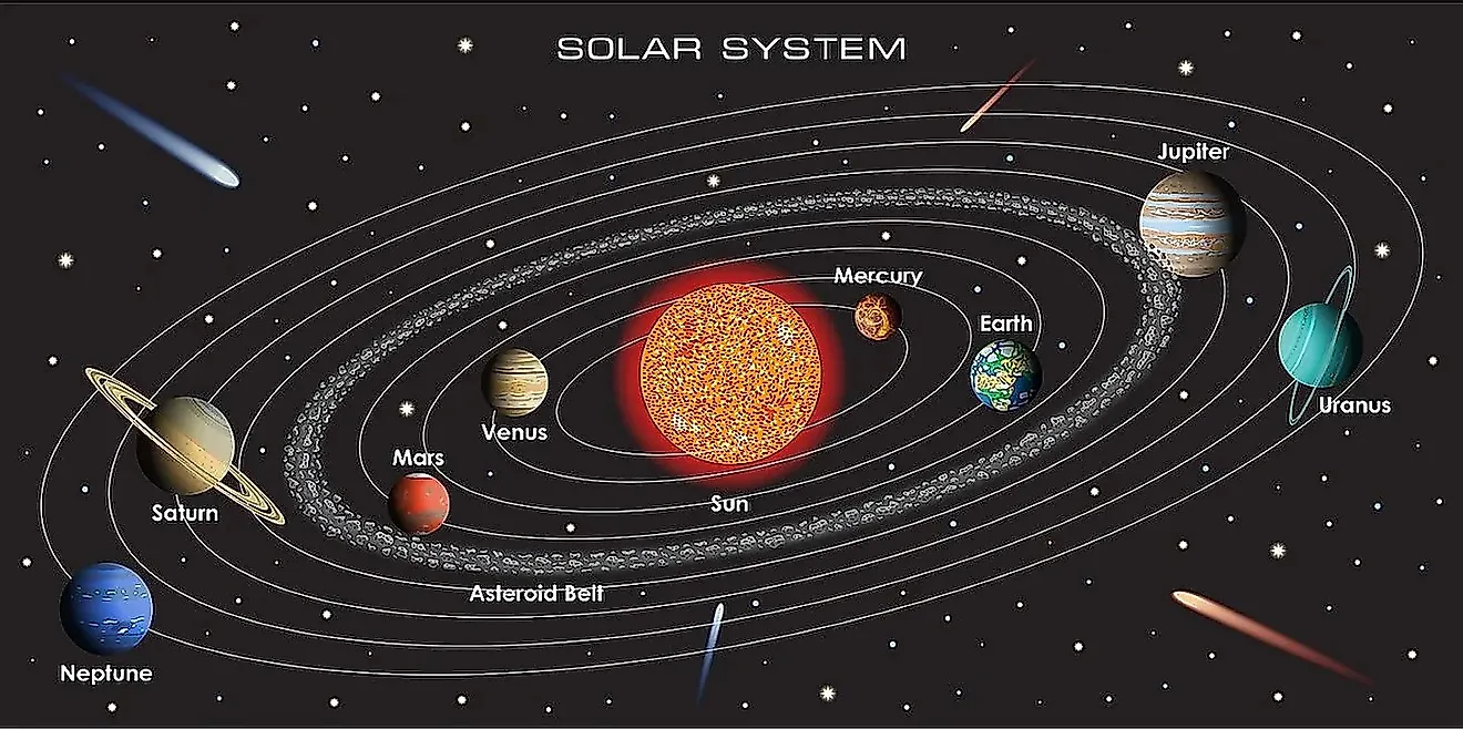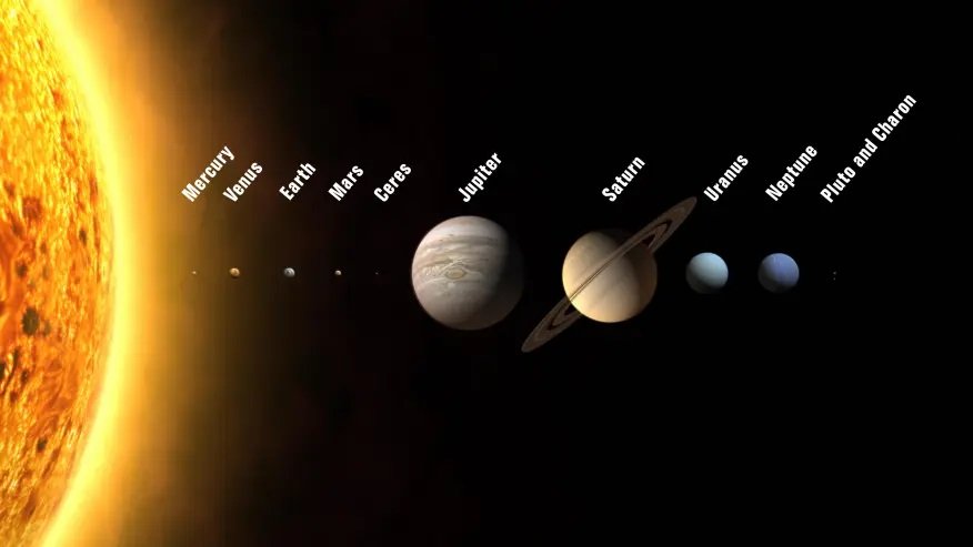 سورج کے بعد نظام شمسی کی سب سے بڑی اشیاء سیارے ہیں۔ سورج کے قریب سے ترتیب میں، یہ سیارے عطارد (مرکری)، زہرہ (وینس)، زمین، مریخ، مشتری (جو بیٹر)، زحل، یورینس اور نیپچون ہیں۔ ان میں سے اکثر حلقوں کی شکل کے راستوں میں سورج کے گرد چکر لگاتے آٹھ سیارے سورج کے گرد گھوم رہے ہیں ان میں سے ایک ہماری زمین بھی ہے سیارے کی اپنی کوئی روشنی نہیں ہوتی جبکہ ستاروں کی اپنی روشنی ہوتی ہے سیارے سورج کی روشنی کو استعمال کرتے ہیں سیارے اپنے محور کے گرد بھی گردش کرتے ہیں اور سورج کے گرد بھی گردش کرتے ہیں اپنے محور کے گرد گردش سے رات دن تبدیل ہوتے ہیں جبکہ سورج کے گرد ایک چکر مکمل کرنے سے سال مکمل ہوتا ہے ہماری زمین 365 دنوں اور چھ گھنٹوں میں سورج کے گرد ایک چکر مکمل کرتی ہے اور اپنے محور کے گرد 24 گھنٹوں میں ایک چکر مکمل کرتی ہے سیارے اپنے محور کے گرد مغرب سے مشرقی طرف گھوم رہے ہیں جب کہ دو سیارے ایسے ہیں جو مشرق سے مغرب کی طرف گھومتے ہیں ان میں سے ایک وینس اور دوسرا یورینس ہے نظام شمسی کا پہلا سیارہ مرکری ہے مرکری نظام شمسی کا سب سے چھوٹا سیارہ ہے اور یہ سورج کے قریب ترین بھی ہے سب سے چھوٹا سال مرکری پر ہوتا ہے اس کا کوئی چاند نہیں ہے مرکری کا سال زمینی 88 دنوں کے برابر ہے نظام شمسی میں دوسرے نمبر پر جو سیارہ ہے وہ وینس ہے وینس نظام شمسی کا گرم ترین سیارہ ہے اور نظام شمسی کا سب سے روشن سیارہ بھی وینس ہے وینس زمین کے قریب ترین سیارہ ہے وینس پر سورج مغرب سے طلوع ہوتا ہے.. نظام شمسی میں تیسرے نمبر پر جو سیارہ ہے وہ ارتھ ہے یعنی ہماری زمین ۔ زمین کو بلیو پلانٹ بھی کہتے ہیں یہ نظام شمسی کا واحد سیارہ ہے جہاں پر زندگی کا وجود پایا جاتا ہے سورج کی روشنی کو زمین تک پہنچنے میں 499 سیکنڈ درکار ہوتے ہیں یعنی 8.3 منٹ۔ زمین کا ایک چاند ہے جو کہ زمین کے گرد گھومتا ہے ۔ چاند کی روشنی کو زمین تک پہنچنے میں 1.3 سیکنڈ کا وقت درکار ہے ۔ زمین نظام شمسی کا پانچواں بڑا سیارہ ہے نظام شمسی کے پہلے چار سیارے ٹھوس شکل میں ہیں اور آخری چار گیسی شکل کے ہیں ۔ زمین کے بعد نظام شمسی میں جو سیارہ ہے وہ مریخ ہے ۔ مریخ کو ریڈ پلانٹ بھی کہتے ہیں مریخ کے دو چاند ہیں ۔ مریخ کے بعد جوپیٹر آتا ہے جو بیٹر نظام شمسی کا سب سے بڑا سیارہ ہے یہ زمین سے 11 گنا بڑا ہے ۔ جوپیٹر کے 95 چاند ہیں ۔ جوپیٹر اپنے محور کے گرد بہت تیز چکر لگاتا ہے اس لیے سب سے چھوٹا دن یہاں پر ہوتا ہے 10 گھنٹوں کا ۔ نظام شمسی میں جو بیٹر اور مریخ کے درمیان ایک بیلٹ موجود ہے جس کو ایسٹرائڈ بیلٹ کہتے ہیں ۔ ایسٹرائڈ بڑی بڑی چٹانیں ہیں جو کہ مریخ اور جوپیٹر کے درمیان گردش کر رہی ہیں جوپیٹر کو سیف گارڈ آف دی ارتھ بھی کہتے ہیں کیونکہ جوپیٹر کی گریوٹی کی وجہ سے ایسٹرائڈ زمین کی طرف نہیں آتے ۔ سورج سے چھ نمبر پر نظام شمسی کا جو سیارہ ہے وہ زحل ہے ۔ زحل نظام شمسی کا سائز کے اعتبار سے دوسرا بڑا سیارہ ہے اس کے 140 چاند ہیں ۔ نظام شمسی میں ساتویں نمبر پر یورینس آتا ہے یورینس کو گرین پلانٹ بھی کہتے ہیں یہاں بھی سورج مغرب سے نکلتا ہے یورینس کے 27 چاند ہیں ۔ سب سے بڑا سال نیپچون پر ہوتا ہے سورج سے بہت دور ہے اس لیے سرد ترین سیارہ ہے اس کے 14 چاند ہیں سائنسدان پلوٹو کو نواں سیارہ کہتے تھے۔ لیکن 2006 میں سائنس دانوں نے فیصلہ کیا کہ پلوٹو کو بونے سیارے کہا جانا چاہیے۔