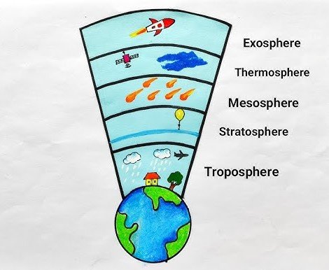 ٹراپوسفیئر زمین کی سطح سے تقریباً 12 کلومیٹر (7.5 میل) اونچائی تک پھیلا ہوا ہے، اس کی اونچائی زمین کے قطبوں یعنی پولز پرکم اور خط استوا پر زیادہ ہے۔ ٹروپوسفیر میں مختلف گیسز موجود ہیں جو جانداروں کے سانس لینے کے لیے ضروری ہیں اور یہ ایٹمسفیر کی وہ لیئر ہے جس میں جاندار سانس لیتے ہیں اور پودے فوٹو سنتھسز کے ذریعے اپنی خوراک تیار کرتے ہیں اور تمام ایٹمسفیئر میں پائے جانے والے آبی بخارات کا 99 پرسنٹ ٹروپوسفیئر میں پایا جاتا ہے ٹروپوسفیئر میں جیسے جیسے آپ اوپر کی طرف جاتے ہیں تو درجہ حرارت کم ہوتا جاتا ہے کیونکہ ٹروپوسفیئر میں پائی جانے والی زیادہ تر حرارت زمین کی سطح سے توانائی کی منتقلی سے پیدا ہوتی ہے۔ ٹروپوسفیئر ایٹمسفیئر کی سب سے ڈینسٹ لیئر ہے اوپر موجود باقی ماحول یعنی ایٹمسفیر کے وزن سے سکیڑی ہوئی ہے زمین کا زیادہ تر موسم یہیں ہوتا ہے، اور تقریباً تمام بادل جو موسم کی وجہ سے پیدا ہوتے ہیں، یہاں پائے جاتے ہیں، سوائے کمولونمبس تھنڈر بادلوں کے، جن کی چوٹییں پڑوسی ایٹمسفیر لیئر اسٹریٹوسفیئر کے نچلے حصوں تک بڑھ سکتی ہیں۔ زیادہ تر ہوائی جہاز ٹروپوسفیئر ، ٹروپوسفیئر اور اسٹریٹوسفیئر کے درمیانی علاقے میں اڑتے ہیں